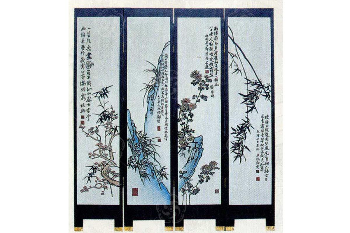 刻漆屏風(fēng)屬于刻漆工藝的一種,該工藝強(qiáng)調(diào)橫平豎直,充分體現(xiàn)刻漆工藝的難度,色彩對(duì)比強(qiáng)烈,又不失和諧。