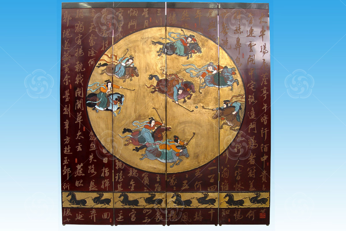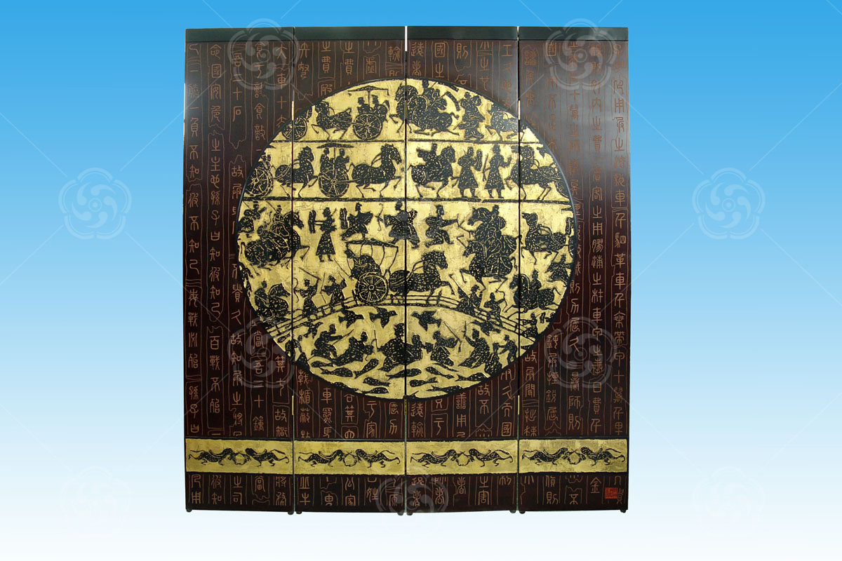 刻漆屏風(fēng)屬于刻漆工藝的一種,該工藝強(qiáng)調(diào)橫平豎直,充分體現(xiàn)刻漆工藝的難度,色彩對(duì)比強(qiáng)烈,又不失和諧。